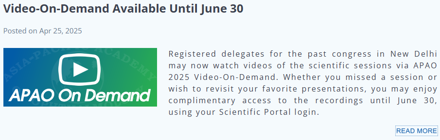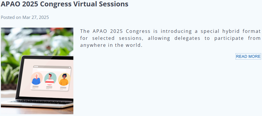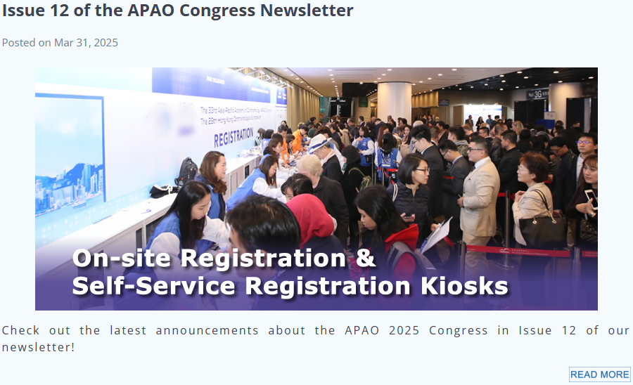 The APAO congress is the pinnacle meeting of ophthalmologists and visual scientists of the Asia-Pacific region. Year after year, it brings together top-notch speakers, practicing…